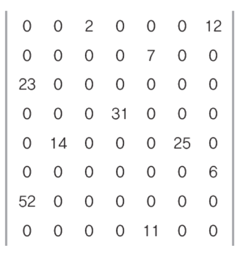 위 같은 행렬이 있다면 0이 많아서 효율성이 떨어진다 따라서 2차원 배열로 표현할 수 있다