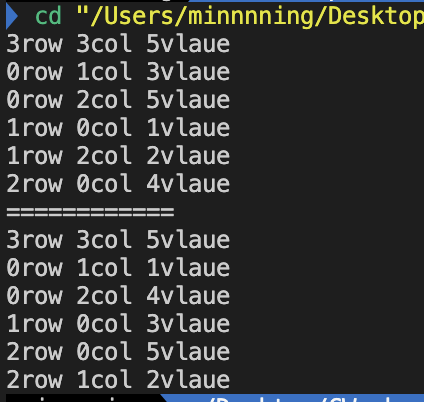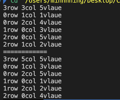 printf("%drow %dcol %dvlaue\n",b[i].row, b[i].col, b[i].value);
