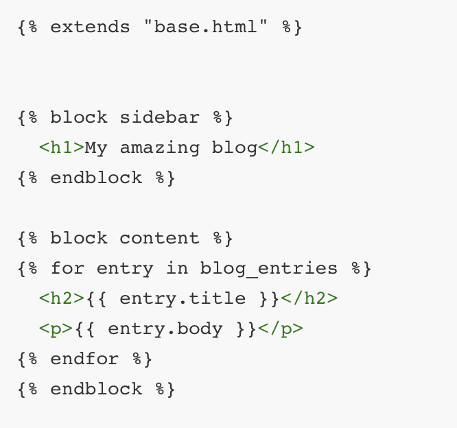 장고를 사용하면 return이나 변수에 html코드를 작성하는 경우가 많은데 이렇게 사용하면 효율적으로 작성하지 못한다 그래서 장고의 템플릿 언어를 알면 for문, if문, 변수, 필터등을 편하게 작성하고 사용할 수 있다
