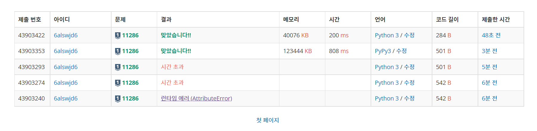 python3로 답을 제출하면 시간 초과가 나오고 pypy3로 제출하면 정상적으로 완료 되지만 시간이 오래 걸린다