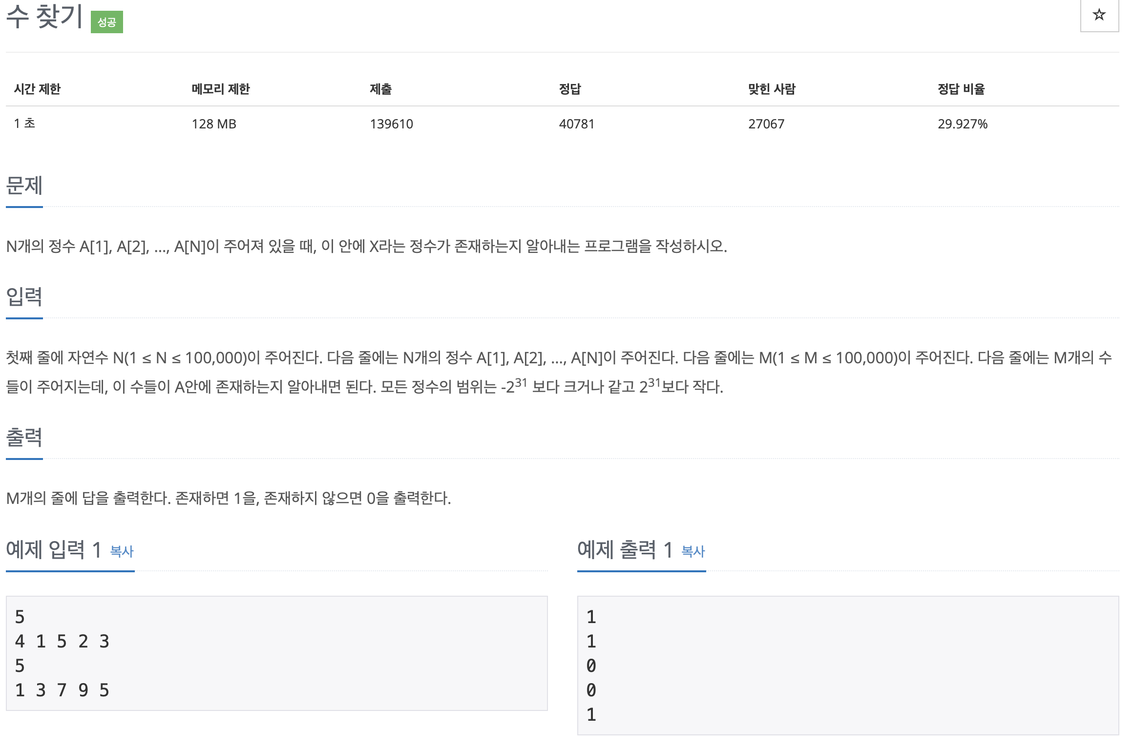 먼저 N,M과 찾을 리스트 A와 목표값이 저장된 리스트 B를 입력 받는다