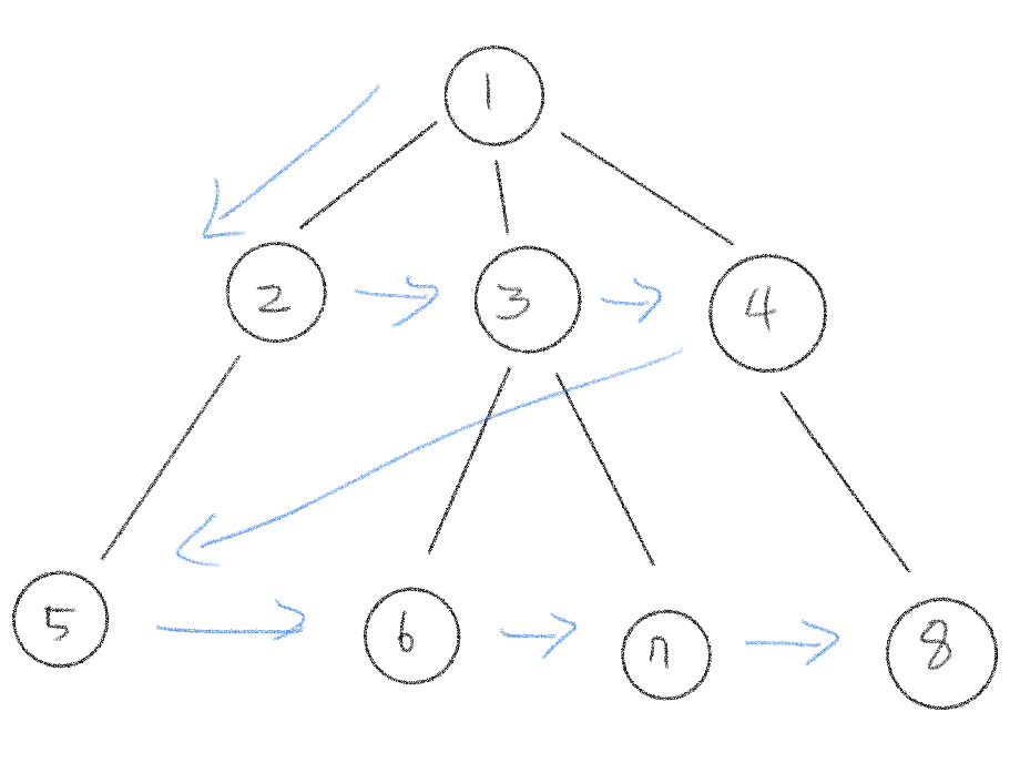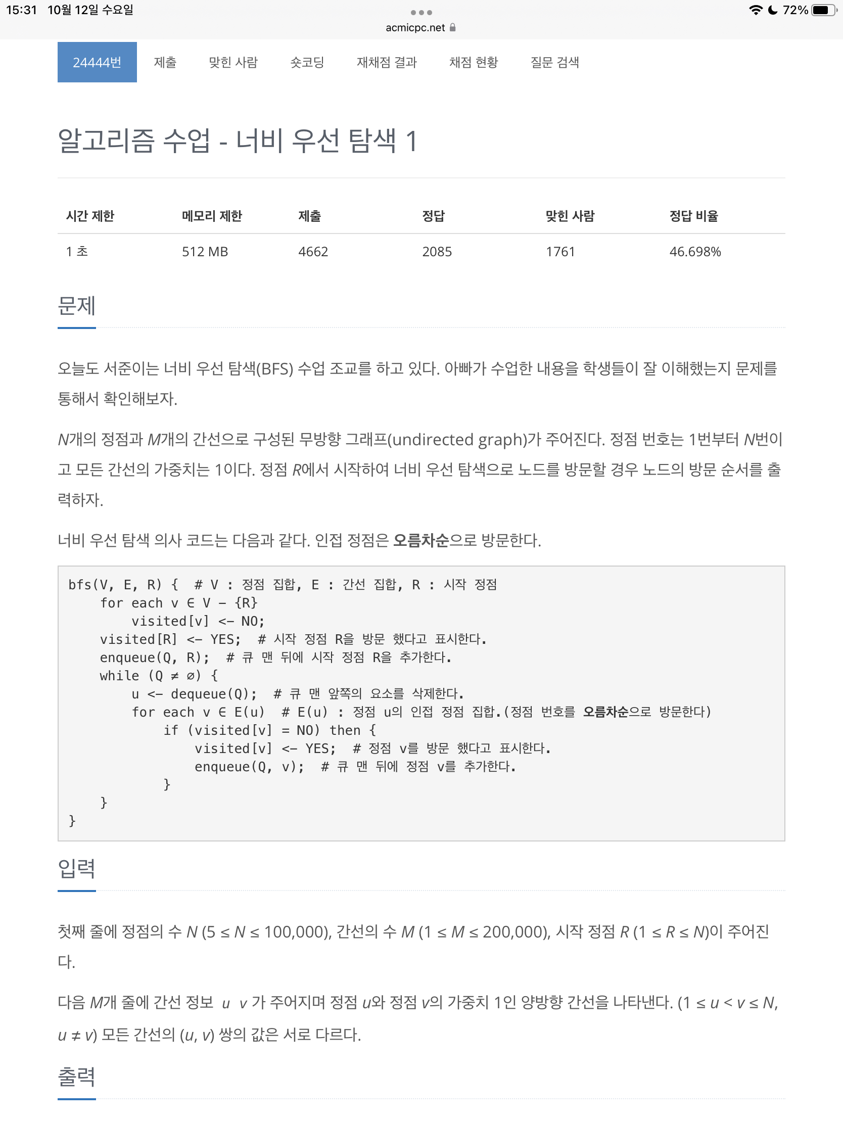 너비 우선 탐색문제는 깊이 우선탐색과 다르게 가로로 먼저 움직이는것이다 기준 노드에서 가장 얕은 노드부터 가장 깊은 노드로 탐색 하는 방법이다