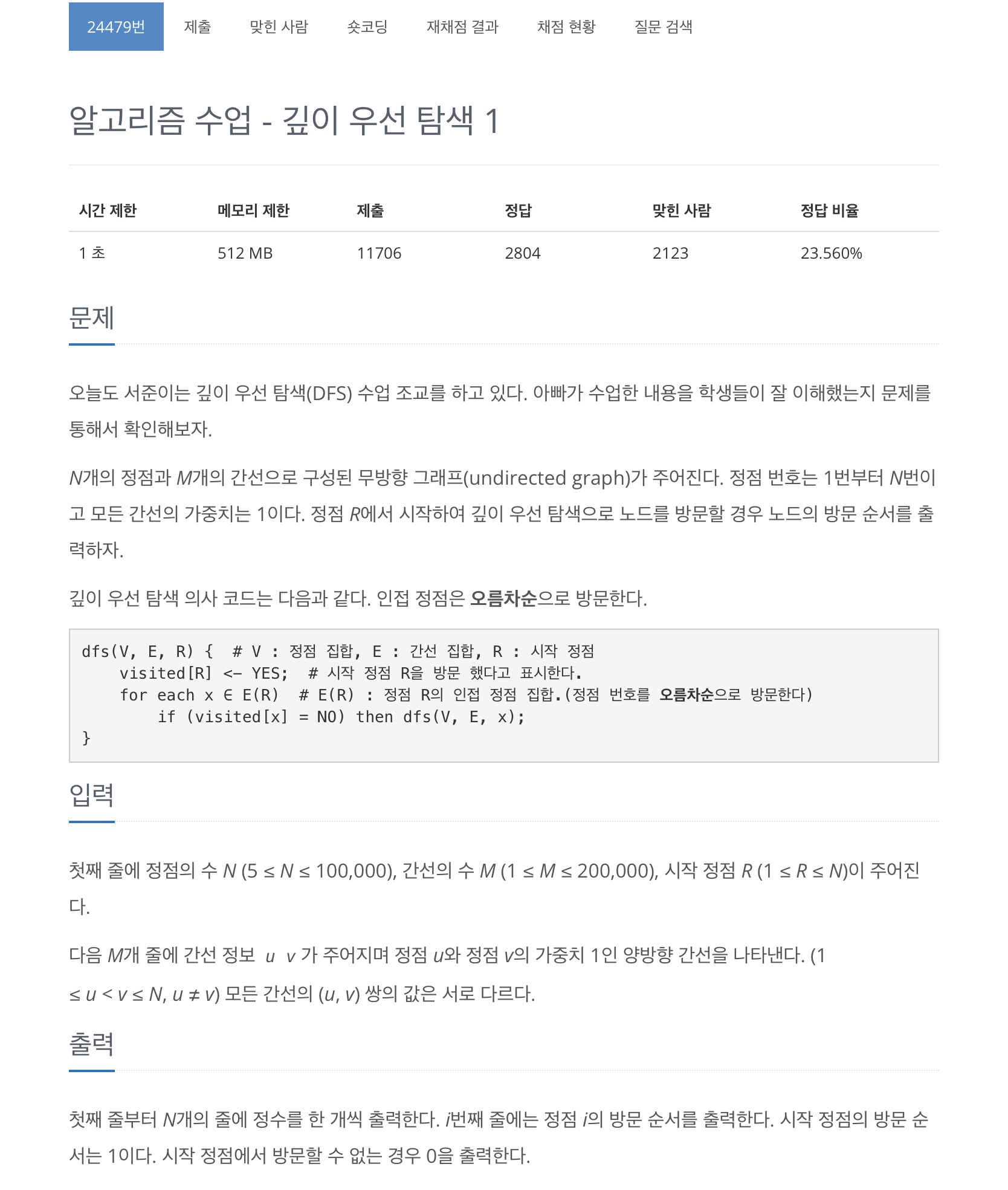 깊이 우선탐색 문제로 깊이 우선 탐색이란 노드에서 좌우로 움직이는 것(bfs)이 아닌 세로로 움직이는것이다 한방향을 계속 가다가 더이상 가지 못하면 다시 가장 가까운 갈림길로 돌아와서 이곳부터 다시 탐색을 진행하는 방법이다