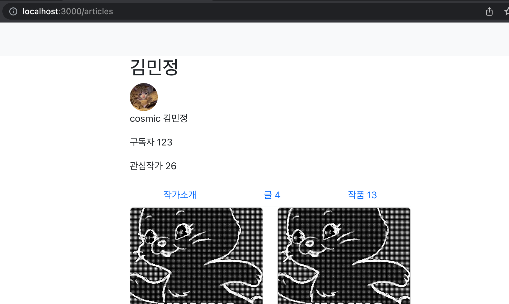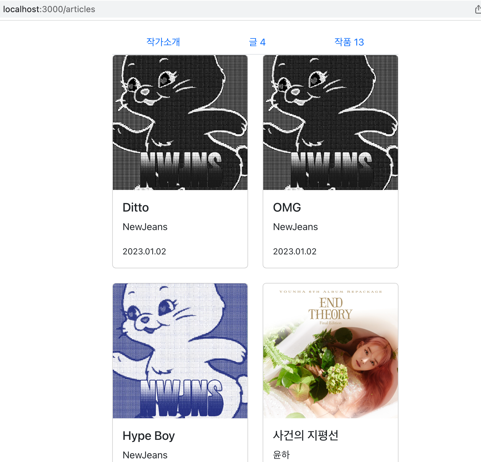 글을 누르면 주소 뒤에 /articles가 추가로 붙는다