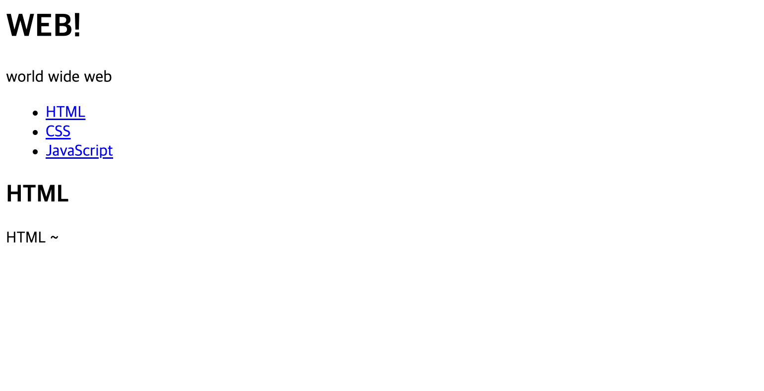 두 코드는 모두 아래의 화면을 보여준다 코드를 보면 오히려 html코드가 더 간단하게 보인다 하지만 페이지가 복잡해진다면 html파일의 코드는 엄청나게 많아질것이다