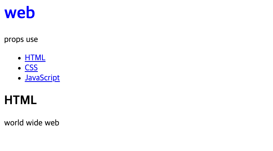<Contents title="HTML" desc="world wide web"></Contents>