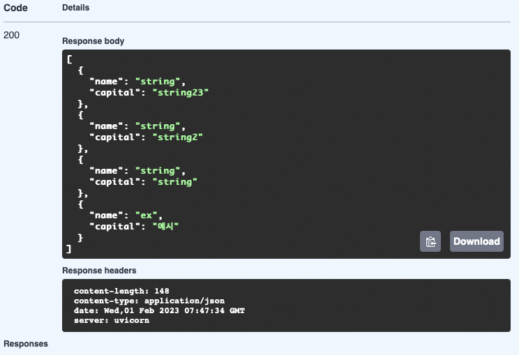 @app.post(경로)에서 경로를 설정하고 아래 함수를 통해서 동작을 설정한다 City클래스를 이용해서 입력된 값을 딕셔너리로 바꾸고 db리스트에 추가하는 동작이다
