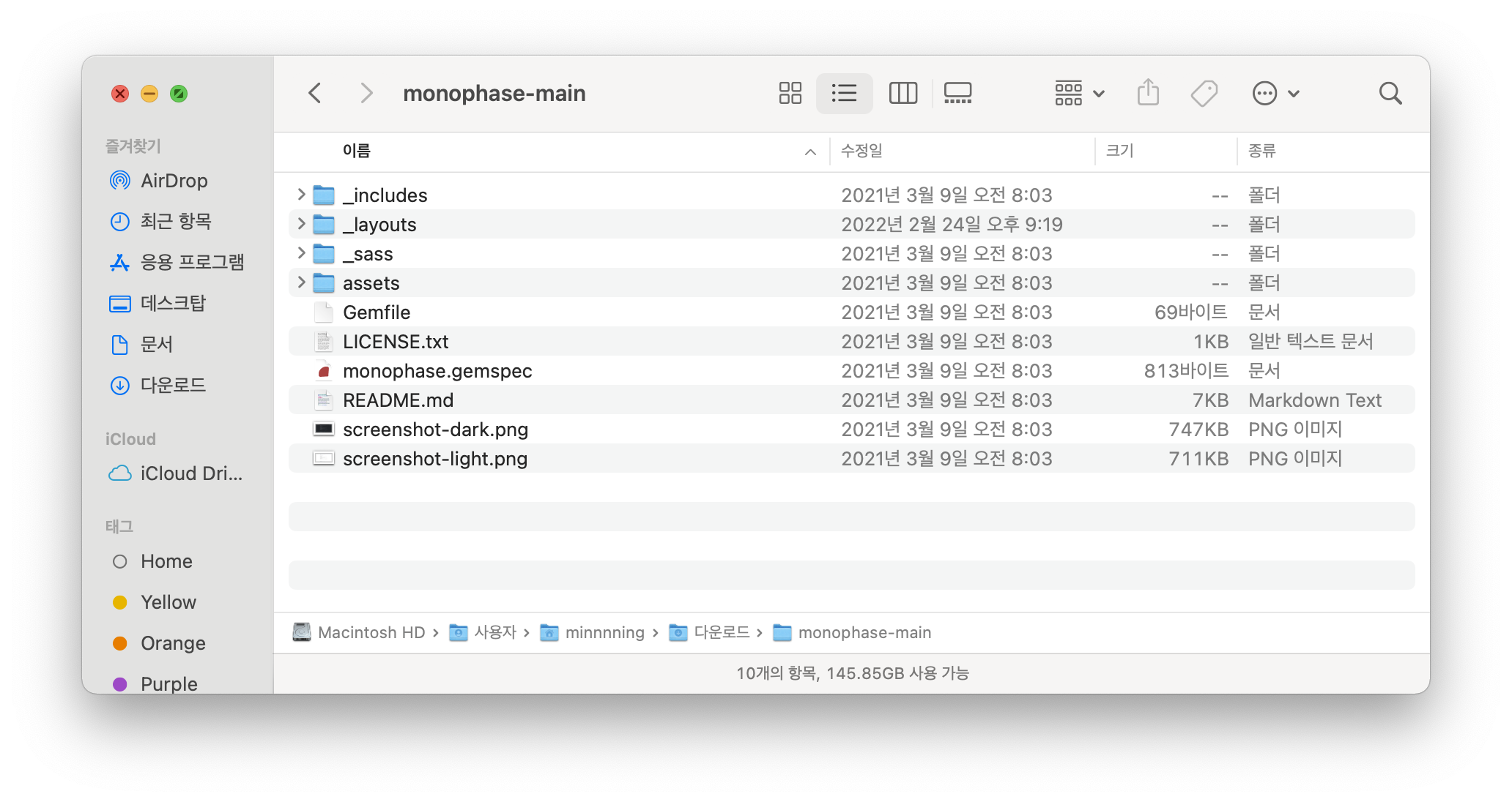 저는 여기서 1번 링크에 있는 Monophase테마를 적용했습니다