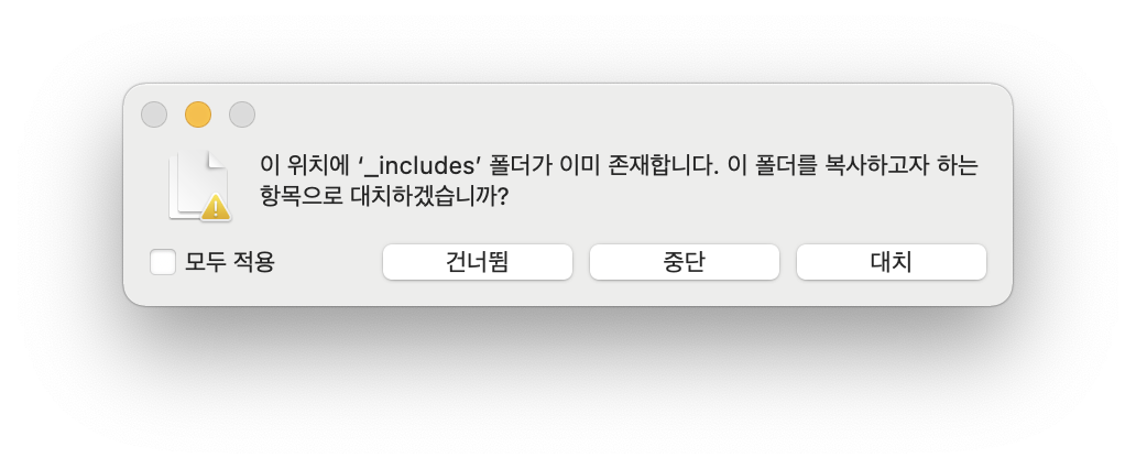 그럼 이 경고 창이 뜨는데 모두 대치를 적용시켜준다