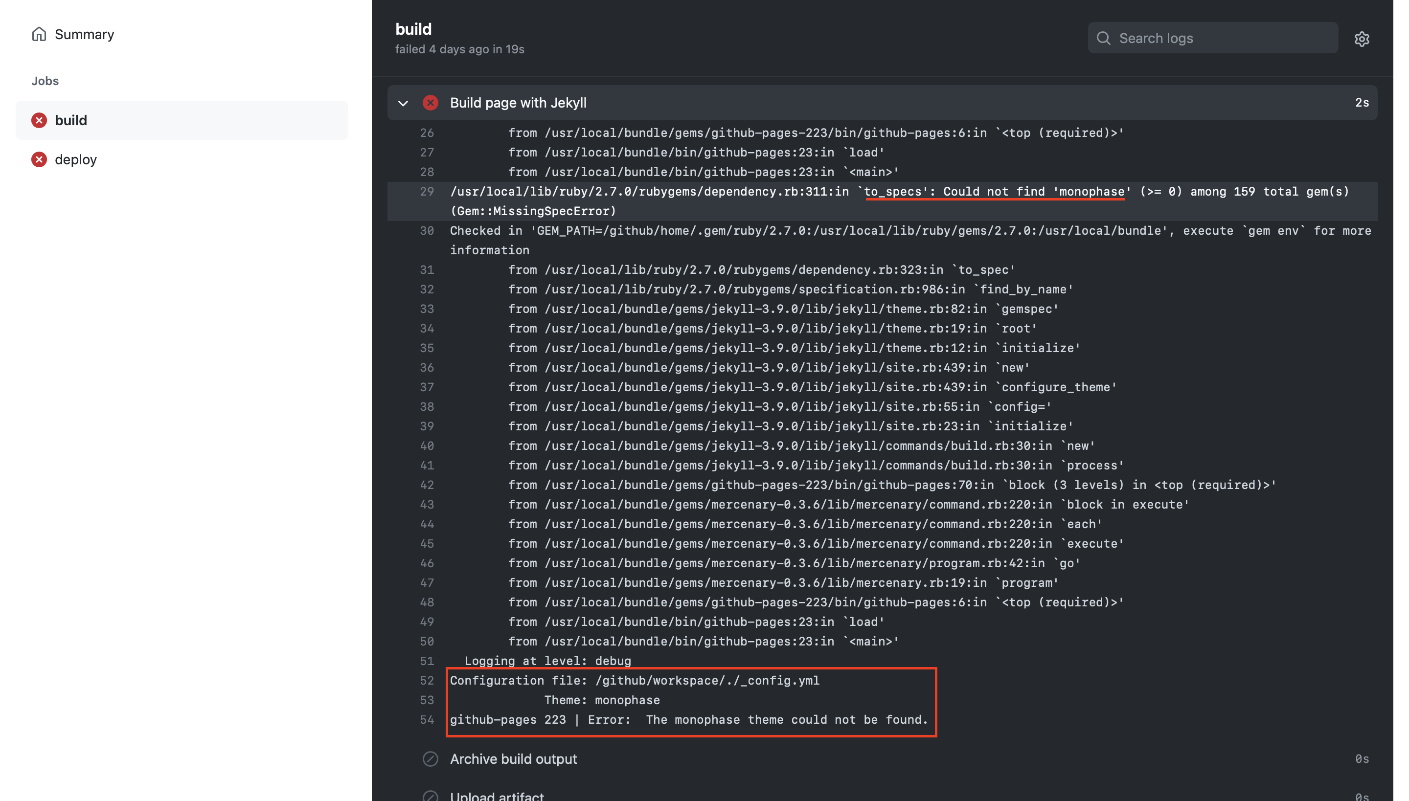 해결하기위해 theme를 remote_theme: monophase로 바꿨다 참고한 사이트