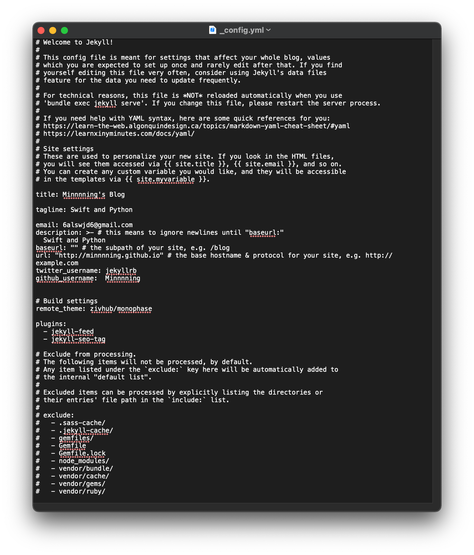 블로그의 이름을 바꾸기 위해서는 _config.yml 파일을 이용한다
