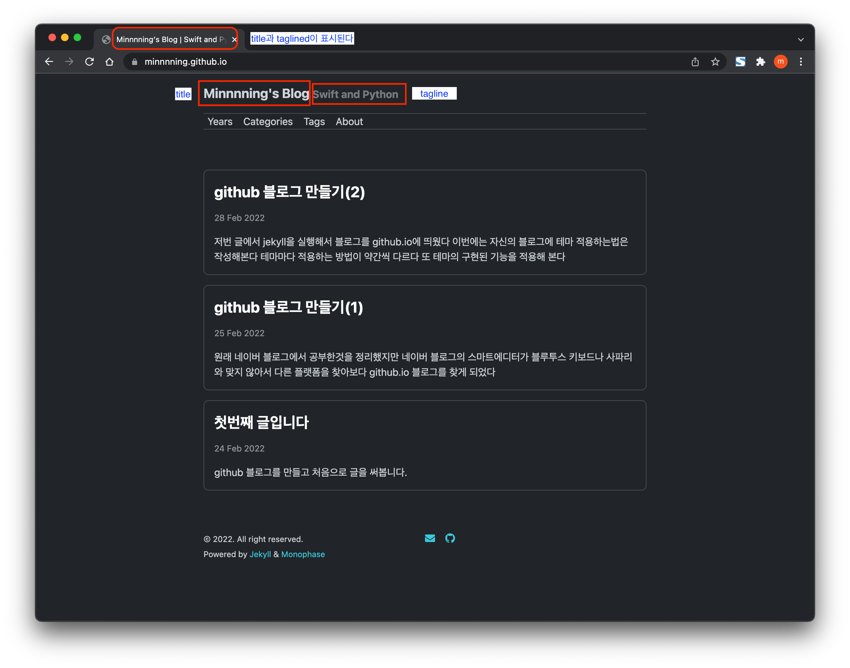 tagline은 이 테마에서 제목 옆에 작게 써진다