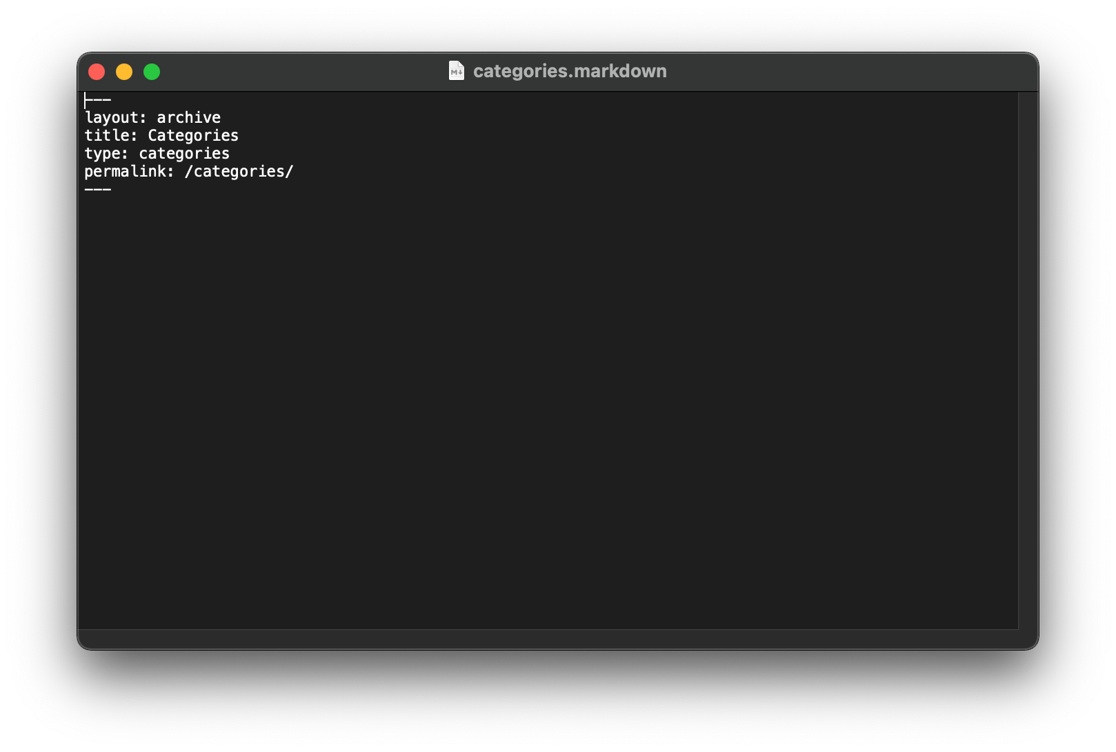 touch categories.markdown 또는 마크다운 에디터를 이용하여 파일을 만들어도 된다