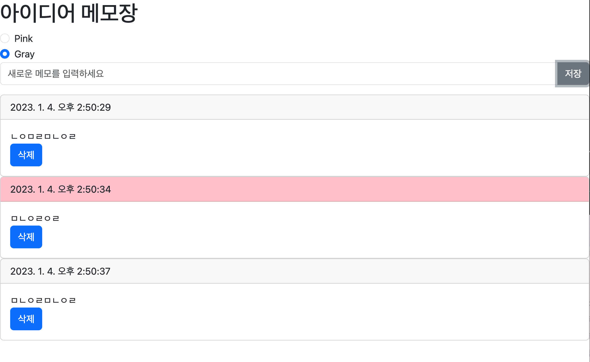- 메모를 입력하고 저장하면 새로운 메모가 저장된다
