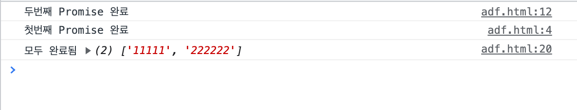promise1과 promise2가 완료 되야지만 Promise.all이 실행된다