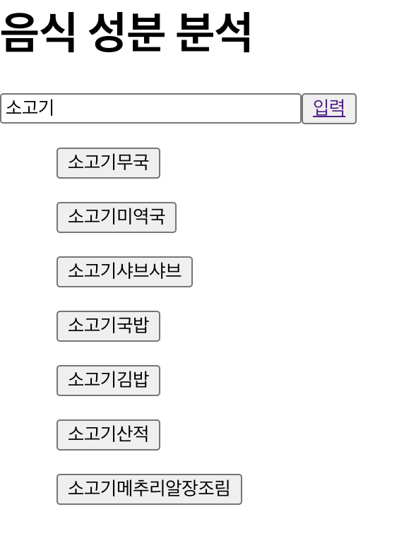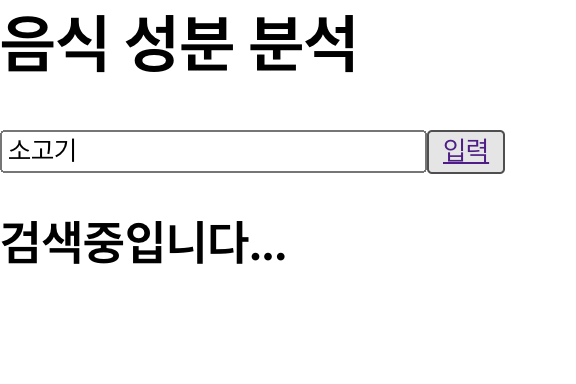 식품검색을 통해서 구성하는 영양소를 보여주고 시각화 한다 이때까지 공부한것으로 리액트를 이용해서 rest api로 요청을 전송및 수신을 하고 받은 데이터를 시각화해서 보여줘야한다
